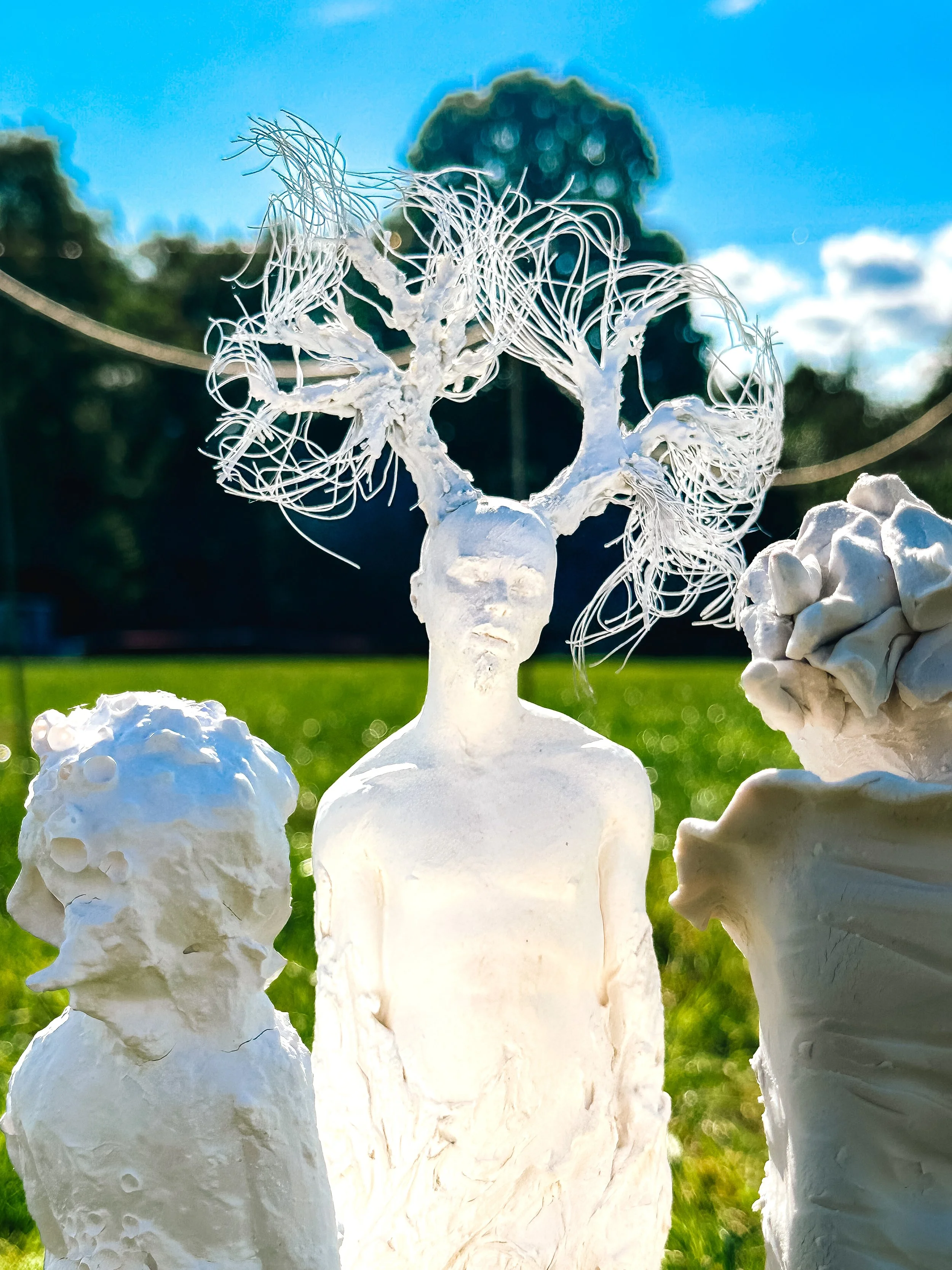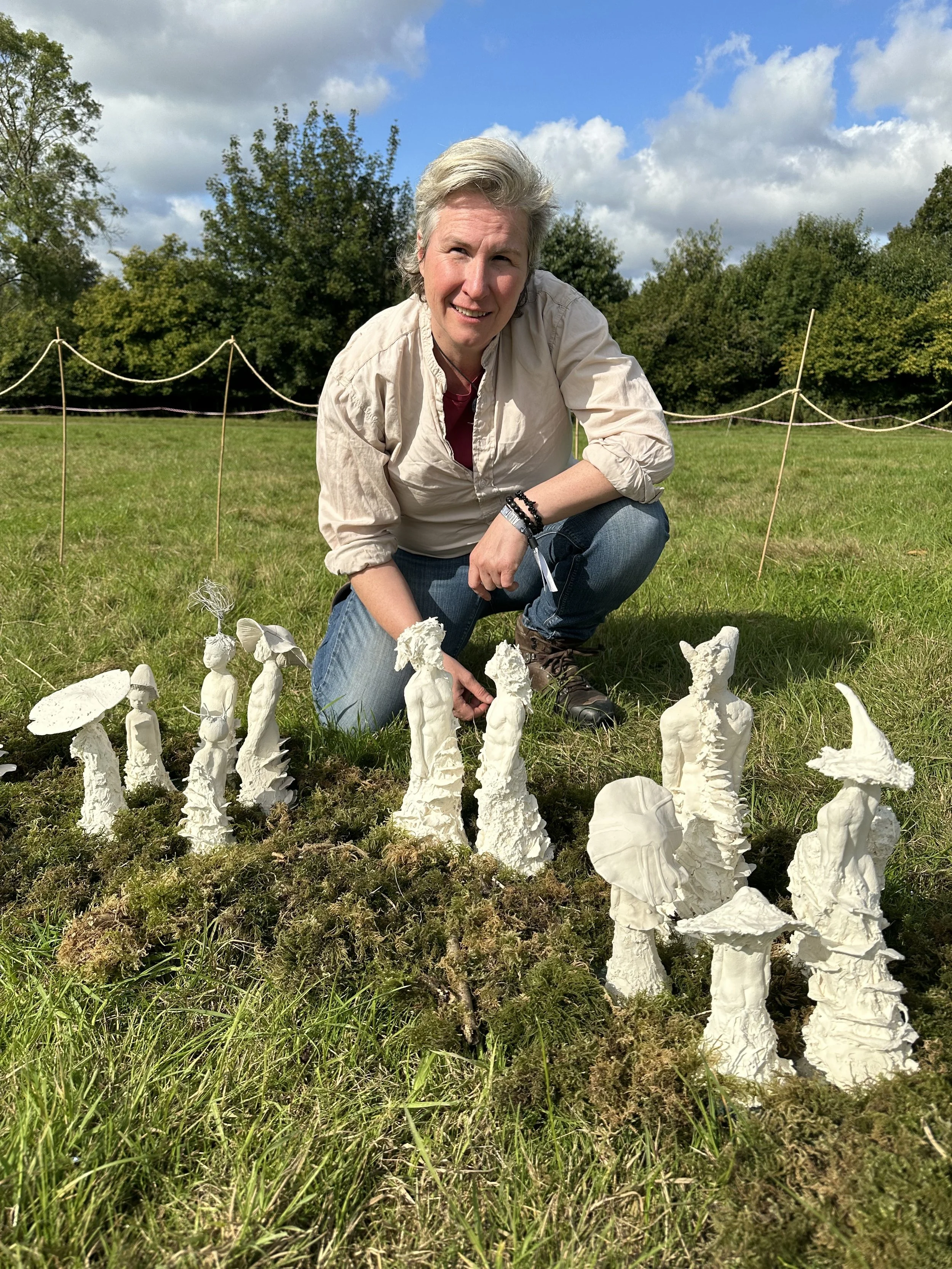 Scientific research has shown the profound healing benefits of working with the primordial medium of clay. As Children of Nature tours each location, workshop participants are invited to work with clay to adorn their own mushroom-inspired ‘child of nature’. Their sculptures will then be added to the next installation, resulting in a truly collaborative artwork and community that is not static but living and growing. Eve has also found that the sacred circle inspires people to stand up and share their voice.