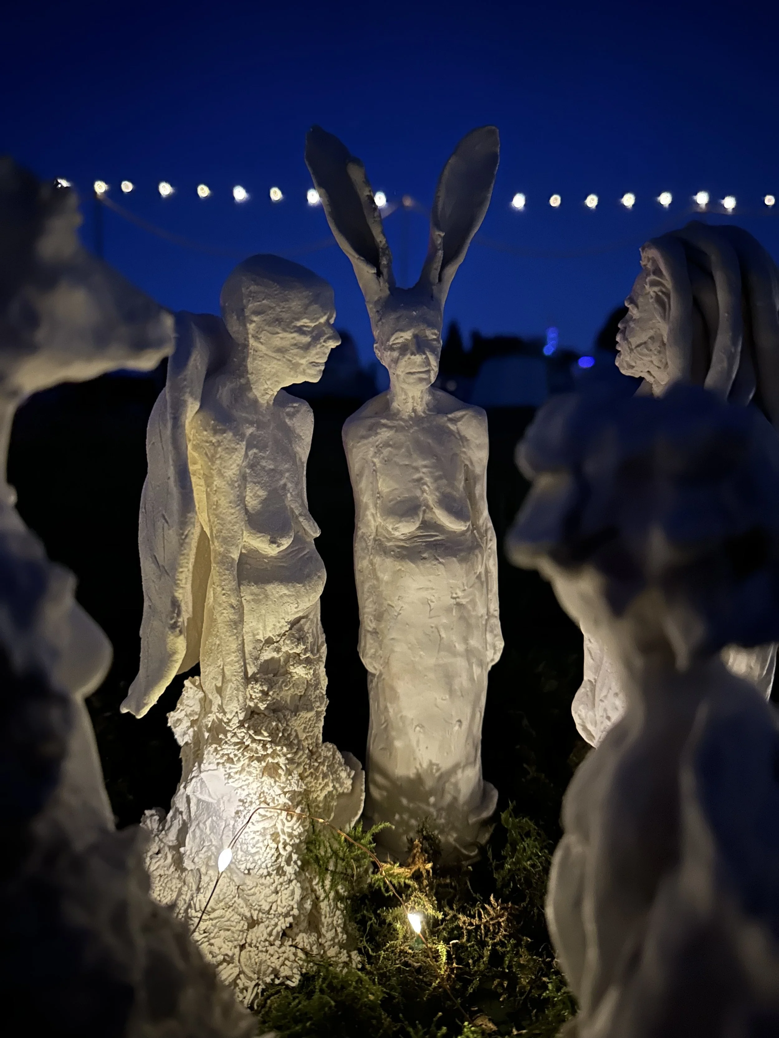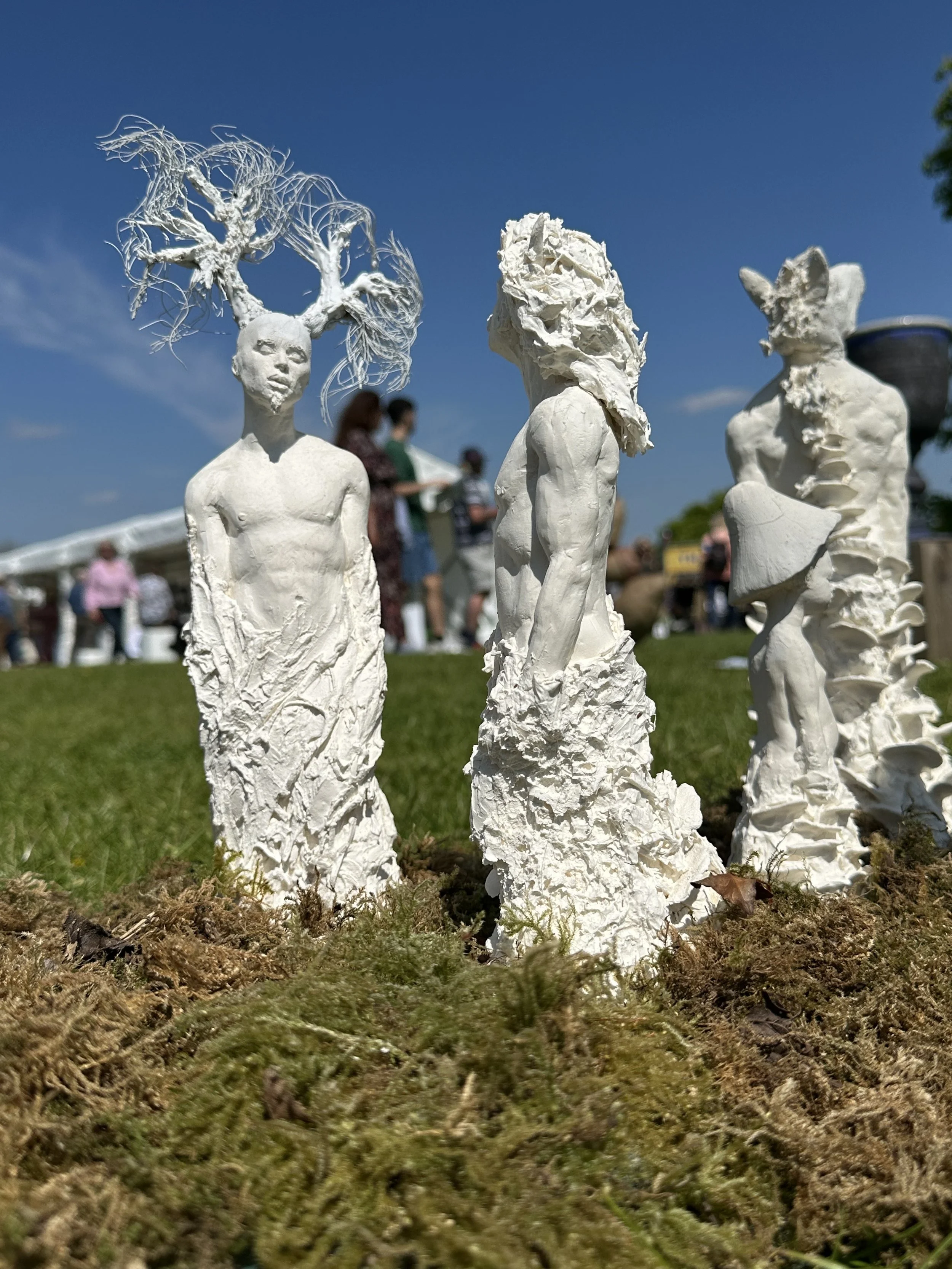 Children of Nature is a collaborative artwork that merges human, animal, plant and fungi - emphasizing our DNA similarities and oneness with nature. Thus far, the installation comprises around 100 hybrid porcelain figurines, placed in the formation of a ceramic fairy ring - a sacred space where viewers are encouraged to step inside and immerse themselves in the magic.